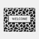 Doormat shown with a black and white cute country cow print design.