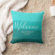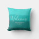 "Welcome" Custom Family Name Sky Blue Stripes Cushion