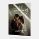 A stylish and elegant wedding sign design with the words "wedding" in a beautiful white script font. It includes space for a custom photo, names, and the wedding date in a modern white font. A perfect way to add a personal touch to your special day!