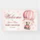 Welcome Cute Pink Teddy Bear Hot Air Balloon Party Banner. Unique, beautiful, stylish design. Easy to be personalised. Font style, size and colours can be changed. Matching items available.
