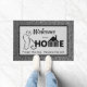 24" x 36" door mat for cat lovers features a cute take on welcoming guests. A cat figure with the word home where the "m" is a house with a heart coming out of the chimney and a bottom line of text that you can easily personalise with your name or leave the as-is messaging. Latex backing for a non-slip grip!
