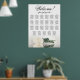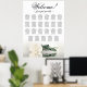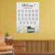 Make a statement at your wedding reception with this exquisite 23 table seating chart. The modern floral design features a striking ivory, white, or cream coloured rose resting horizontally, elegantly reflecting in a serene pool of water. The chart can accommodate up to 230 guests with 10 seats per table. The title is written in elegant script calligraphy, welcoming your guests and guiding them to their designated tables. The bottom section of the chart is dedicated to the names of the couple and their wedding date, adding a personalised touch to your decor. This seating chart exudes a romantic, graceful, classy, and glamourous vibe, making it the perfect way to elevate the style and elegance of your wedding reception while simplifying the seating arrangements for your guests.