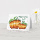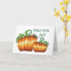 Colourful card perfect for sending fall greetings! Card features a classic illustration of two squat pumpkins, both a cheerful bright orange with picturesque curly stems. "Welcome fall" is written above.