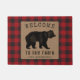 Welcome Family Cabin Rustic Bear Red Buffalo Plaid Doormat