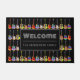Guitar pattern custom name black welcome doormat. Electric guitars, acoustic guitars and semi acoustic guitars funky psychedelic guitar pattern welcome mat in vibrant pop art colours. Add your family name using the template. Any guitarist, musician or musical family will tell you that you can never have to many guitars. This fun colourful guitar design celebrates the energy and variety of this wonderful musical instrument. The perfect gift for guitarists, musicians and music lovers. Psychedelic guitar pop art original artwork by artist Catherine Sweetman