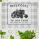 Welcome Family Name Farm Tractor White Plaid Tea Towel