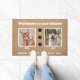 Welcome guests with this funny doormat ! "Welcome to our House." Personalize with your pets photos and names. Perfect for welcoming visitors to your home.