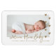Announce and welcome home the arrival of your new baby with our simple and modern baby photo magnet birth announcement card. The design features a single photo layout to display your new baby's photo. "Welcome Home Baby" is displayed in a modern faux gold calligraphy overlay with the date of birth and baby's name placed below the photo. Simple faux gold hearts floating over the photo adds a cute design.