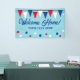 Welcome Home banner sign with colourful bunting flags garland. Add your own text or welcome home text. Cheerful design with elegant typography template. Perfect for welcome home parties, gatherings, reunion, new baby, work and other celebrations. Personalised decorations for festive party.