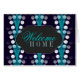 Customisable Welcome Home Greeting Card : Gorgeous pattern made with teal, white on dark dark purple colours ~ personalise these customisable greeting cards cover (or turn them into invitations for a Welcome Home party!) and make the occasion the best welcome home! . Personalise the inside of the card with your heartfelt greeting or leave it blank to handwrite each personally.