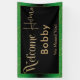 Whether your special guest is returning home from a military deployment, a long trip, a sabbatical, long hospital stay or otherwise, this design is versatile enough you may find it just what you need! Using two distinctive fonts, I've created graphics for your banner and embellished them with a faux-metallic gold glitter effect for a festive vibe. Although each part can be moved around to suit your needs, the header reads "Welcome Home". Use the template fields to add your own details. All text was placed over a black rectangle which overlays a bright kelly green background. Glittery gold confetti and a black gradient image that creates an ombre result complete the border effect. Change the background to any colour or hue you like! // 130, 131 //