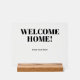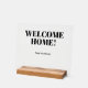 Welcome home personalised acrylic sign for home or office. Make your own elegant sign for welcoming somebody back. Add your own custom text and colours.