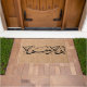 ترحيب عصري أنيق باللغة العربية، طباعة أحلى وسهلا باللون الأسود الأنيق على خلفية نمط سجادة بنية فاتحة. رائعة لنفسك أو كهدية لشخص يقول أحلى وسهلا كثيرًا ويحب سجادة باب عربية جمالية.