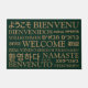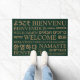 Welcome in many different languages dark pine green and faux gold elegant serif typography modern fun pattern Doormat.