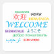 Say Welcome in different languages around the world on a classic Square Sticker.