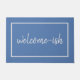 It's funny because it's true. You are welcome-ish. This humourous door mat is for introverts, the anti-social, and the socially awkward, who receive guests with a little reluctance and maybe even some anxiety. Simple, elegant script typography on a slate blue background. Unexpected, quirky and just a little bit sarcastic.