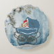 Teal blue winter snow scene background with a toy , a pram and Typographic Text