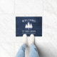 Welcome company to your country home with a beautiful rustic themed entry way doormat, featuring your name and "Family Cabin", Ranch, Cottage or other desired text. This custom, unique design features rustic country style text with a white silhouette of pine trees on a print of wood planks in rich blue colours. To see more designs like this, feel free to visit my store here at "Zazzle.com/Rustic_Charm". Thanks.
