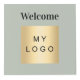 For hotel rooms, restaurant tables, rental properties. Personalise and add your business logo, and space for two QR codes. Olive green background, black text.