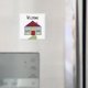 A cute 'welcome'. Great for new neighbours or for your own home. A little blue house with a deep red roof. Flower boxes and a stoneway path lead to the front door.