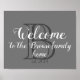 Welcome to family home quote custom monogram wall art poster to personalise with family name and date ,for house warming wedding gift, home decor in grey and white modern style. wall art decor.