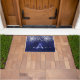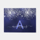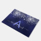 A stylish navy blue background with faux silver glitter dust. The blue colour is uneven. Personalise and add your family name and monogram letter, initial. White and blue coloured letters. The name is written with a trendy hand lettered script with swashes. To keep the swashes only delete the sample name, leave the spaces or emoji's in front and after the name.