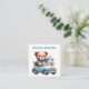 Cute Boy Teddy Bear in a blue car postcard.
