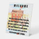 Welcome of a cup of tea pedestal sign