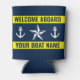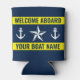 Welcome on board custom boat name nautical yellow can cooler