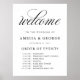 This is a beautiful portrait poster welcome order of events wedding sign featuring script text.