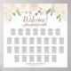 This beautiful watercolor floral wedding seating chart features a rustic boho chic design with hand painted roses, blossoms, and flowers, in neutral pastel shades of champagne blush or pale peach, along with sprigs of eucalyptus leaves and garden greenery. The elegant script calligraphy title reads "Welcome! please find your table" with the couple's names and wedding date displayed at the bottom. With space for 290 guests at 29 tables - 10 seats per table, this chart is a wonderful way to welcome your guests to your reception while making it easy for them to find their seats.