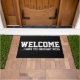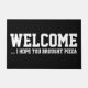 Humourous “Welcome... I hope you brought pizza” welcome mat with black background. Perfect for any pizza lover.