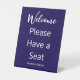 Welcome Please Have a Seat Business Name Dark Blue Pedestal Sign
