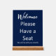 Welcome Please Have a Seat Dark Blue & White Text Acrylic Sign