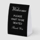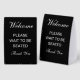 Welcome Please wait to be seated thank you paper table tent Sign. Elegant desk counter sign for welcoming guests in your restaurant, cafe, bar, club, cafeteria, shop, store, event, diner, wedding, party etc. Black and white or custom colors. Classy font can be changed too.