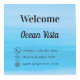 For beach hotel rooms, restaurant tables, rental properties. Personalise and add your business logo, and space for 4 QR codes. Blue ocean, sea water as background. Black text.
