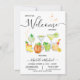 Watercolor Welcome Engagement cocktail party invitations with an assortment of fun cocktails, such as a moscow mule, margarita, martini, wine and bourbon. Great simple and modern feel. Wording can be changed to any occasion, Birthdays, graduation, showers, etc.
