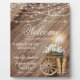 Welcome - Rustic Wood Barrel & String Lights Plaque