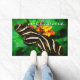 Welcome Script Black White Striped Butterfly Photo Doormat