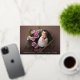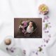 Elegant birth announcement cards feature a full bleed horizontal or landscape orientated photo with "welcome" overlaid in rose gold foil calligraphy script lettering. Personalise with baby's name and birth stats beneath, and add three additional photos to the back, along with a personal message.