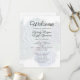 Flat wedding program template with succulents image background and black text. Customise both sides with ceremony information and list the members of the wedding party. Pretty blue and green succulents design.