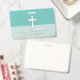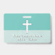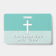Welcome your visitors with our Church name teal-and-white simple white cross personalised name tag badge. Perfect for creating a warm, connected church community while helping everyone feel at home! Keep design as is or replace with your branding/logo.