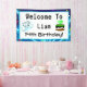 Power up your celebration with this bold and playful gamer-themed design! Featuring a gaming controller in a vibrant world filled with “Level Up” birthday cake, confetti, balloons, dragons, aeroplanes, and more, this fun design is perfect for adding a touch of gaming excitement to your party. This is a welcome to banner!