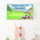 Add a refreshing touch to her second birthday with this playful golf-themed welcome banner. Featuring a pink polka dot golf cart beside a putting green, a festive cake, and bright helium balloons—including a bold number 2 balloon—this sweet design is perfect for a golf-loving family or a whimsical second birthday celebration. A cheerful and unique party favour, it’s the perfect way to greet your guest!