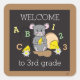 Some cute stickers with a cartoon mouse to welcome your young students on the first day of school . Personalise it with your grade level . Be aware that the brown frame will not be as thick as stickers are printed .