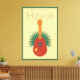 A fun retro poster design with an upright ukulele in front of a palm frond and the text Welcome to Hawaii at the top. Framed in Kauai green.