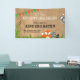This whimsical welcome to kindergarten banner offers an animal theme featuring the text "Let the adventure begin" on a rustic wood background. The design is accented with a graphic of a fox, racoon and an owl. Custom text allows you to add the teacher's name and school.