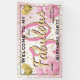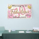 Welcome to my 50 and Fabulous birthday party. This is a large pink-and-gold banner with text templates to make it easy to change the text to your own event, date, and name. The pink number 50 is edged with gold, and the golden 'Fabulous' is trimmed in pink. The pink background is sprinkled with confetti and balloons. This elegant design is a fun way to welcome guests to your awesome 50th birthday party. If you are planning a birthday party for someone soon to be 50 years old, this girly design will be a hit.