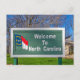 Green and white sign with a red, blue, white, and yellow flag on it at a welcome centre in North Carolina