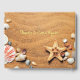 Welcome To Our Beach House with a sand and sea shells cover with casual yellow and white text. Click “Edit Using Design Tool” to change colours and type styles.